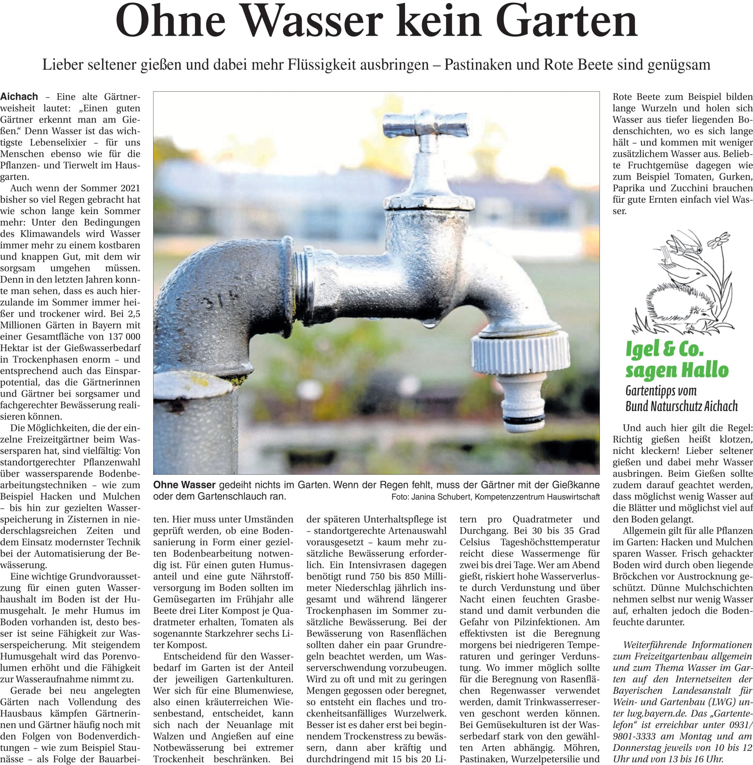 wird mit Kompost statt Torf, natürlichem Dünger, Verzicht auf chemische Pflanzenschutzmittel, heimischen standortgerechten Pflanzen, schonender Bodenbearbeitung und richtigem Gießen bearbeitet. - Werden Wasserressourcen bestmöglich genutzt?