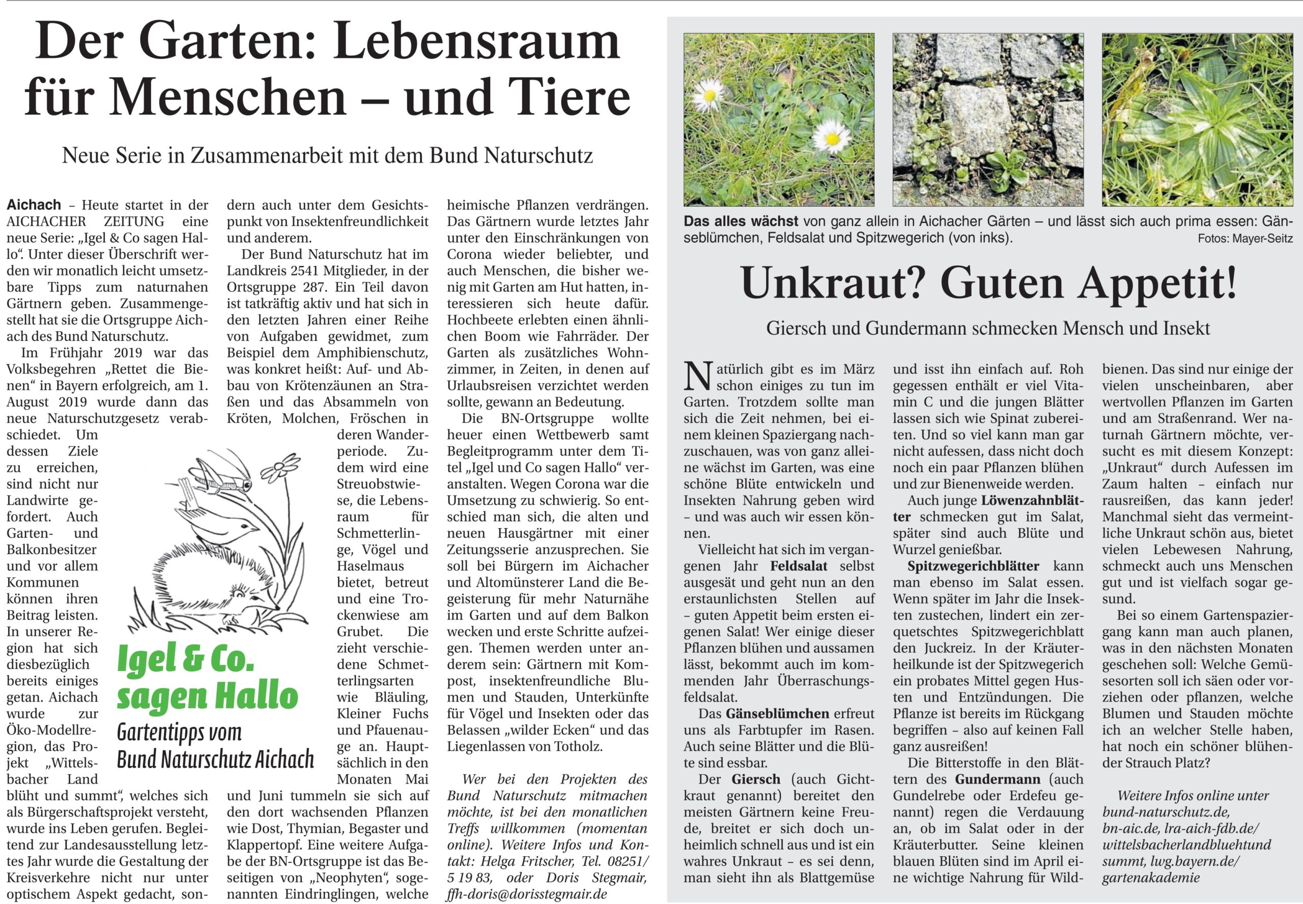 Organisiert vom Natur- und Umweltschutzbeirat der Stadt Aichach und dem Bund Naturschutz in Bayern e.V. (Ortsgruppe Aichach).